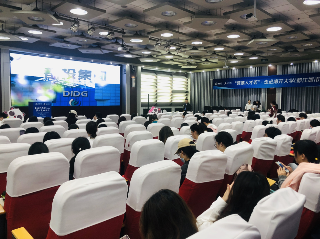 5月9日,由成都市委人才工作領(lǐng)導(dǎo)小組辦公室主辦,都江堰市委人才工作領(lǐng)導(dǎo)小組辦公室承辦的“蓉漂人才薈”走進(jìn)南開大學(xué)都江堰市專場推介會隆重舉行。本次活動以“更好的成都,成就更好的你”為主題,分為“蓉耀津門,幸會南開”“問道天府,才潤都江”“智領(lǐng)未來,蓉光啟航 ”三個篇章,圍繞助力成都市加快建設(shè)全國創(chuàng)新人才高地、都江堰特色的創(chuàng)新人才發(fā)展區(qū),積極搭建校地合作新平臺。都投集團(tuán)作為參與企業(yè),為本次活動提供優(yōu)質(zhì)工作崗位,涵蓋文旅、投資、金融等多個領(lǐng)域,向“千里馬”發(fā)出誠摯的邀請。